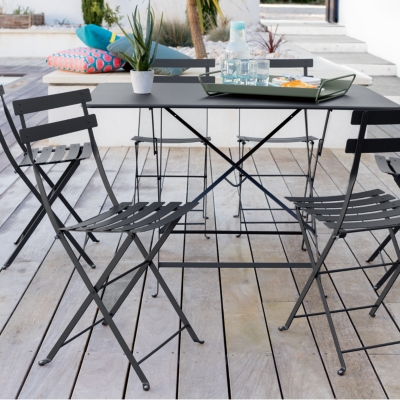 Salon De Jardin Bistrot Pliable Emilia Carre Bleu Grise Avec Deux